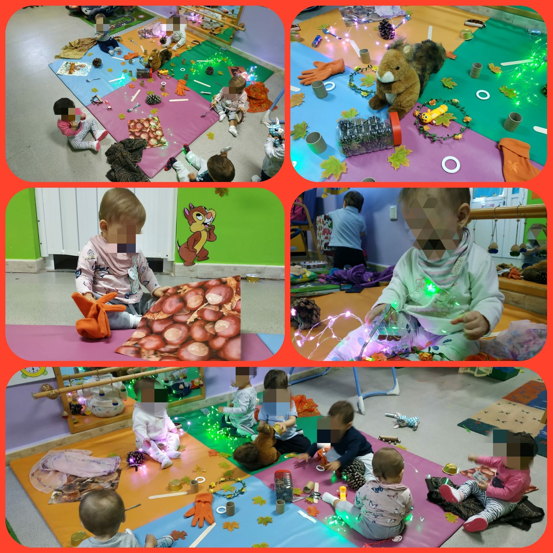 A los más pequeños del municipio les enseñan el otoño y sus colores tocando y jugando en las Casas de Niños del Municipio. Sus monitoras lo consiguen con una divertida actividad utilizando piñas, hojas, cascabeles, etc