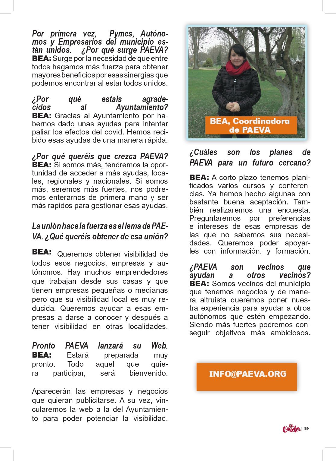 PAEVA: «Gracias al Ayuntamiento por habernos dado ayudas para intentar paliar los efectos del Covid»