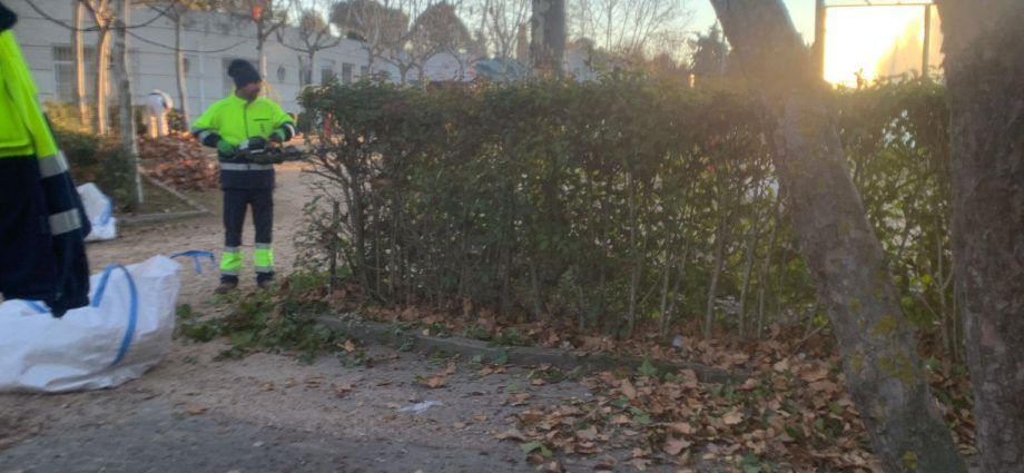 El equipo de mantenimiento del Ayuntamiento trabaja desde hace días en la poda de setos y arbustos además de la limpieza de la zona recreativa y deportiva de Miraval.