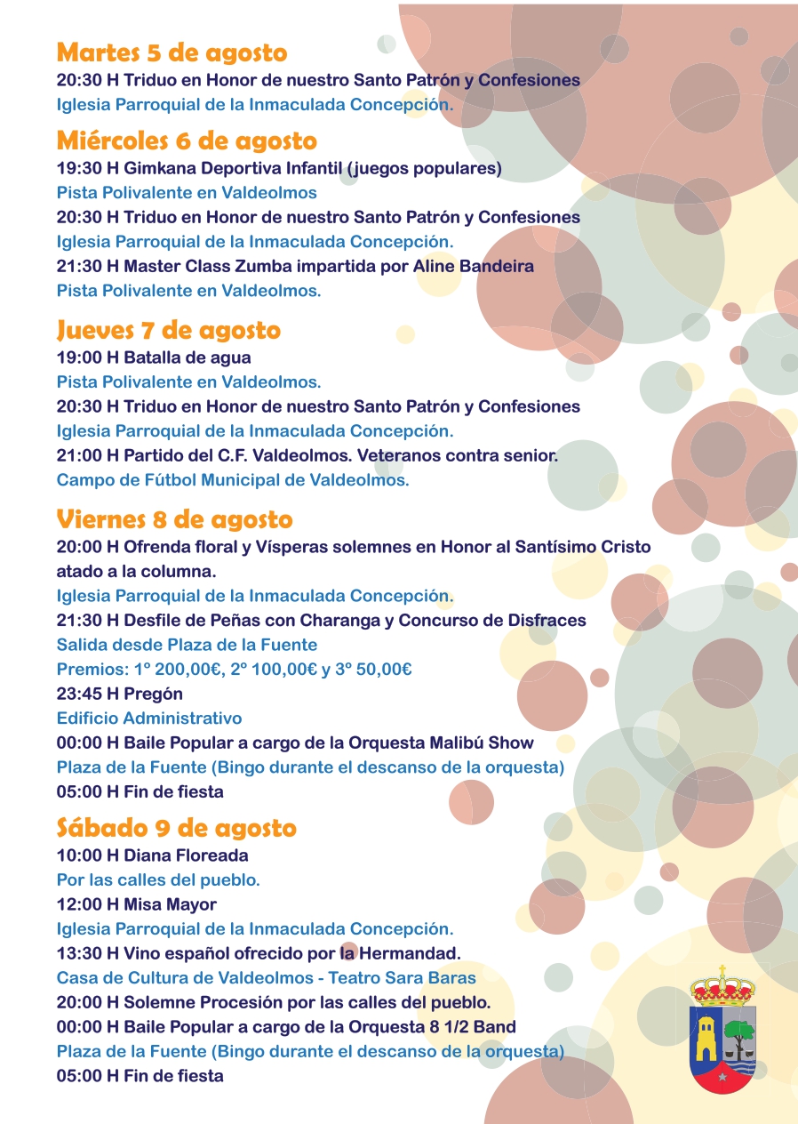 Programa Fiestas Patronales de Valdeolmos en honor al Santísimo Cristo atado a la Columna »