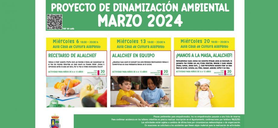 - Miércoles 6 de marzo: ‘RECETARIO DE ALALCHEF’ Taller para crear un libro de recetas en el Aula de la Casa de la Cultura de Alalpardo. Actividad para niñ@s de 6 a 12 años. 18:00 – 20:00 horas 20 plazas con inscripción previa.