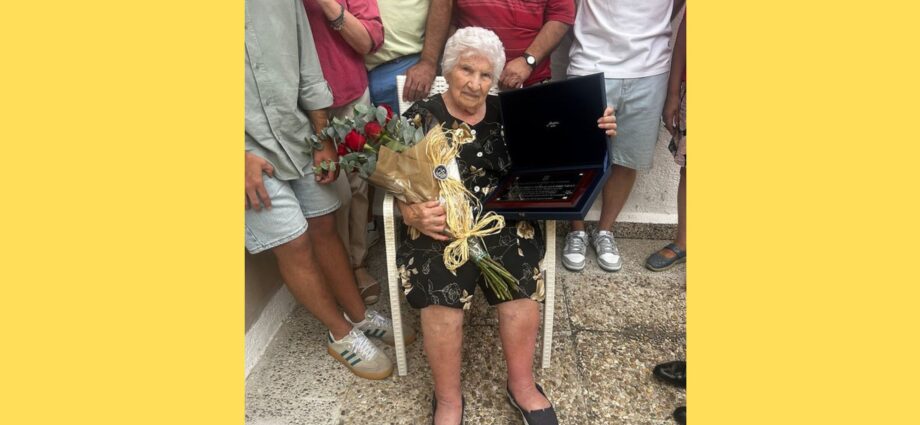 ‘A Dolores Pérez Alcobendas en conmemoración de sus 100 años de vida, un siglo de sabiduría, fortaleza y amor que inspiran a quienes la rodean. Con profundo cariño, respeto y admiración de su pueblo VALDEOLMOS’. 29 de agosto de 2025