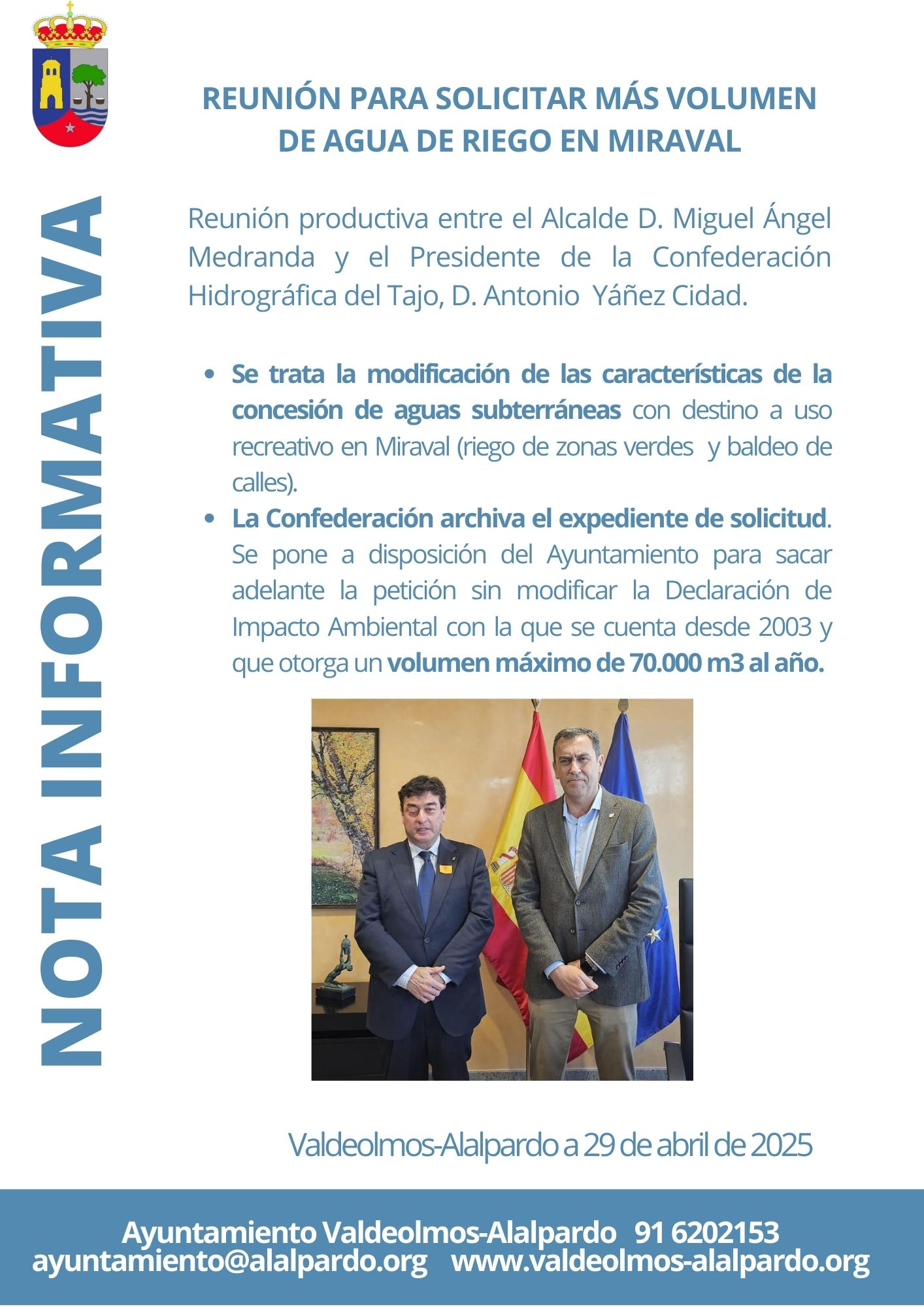 Reunión para solicitar más volumen de agua de riego en Miraval » Reunión Confederación Hidrografica del Tajo