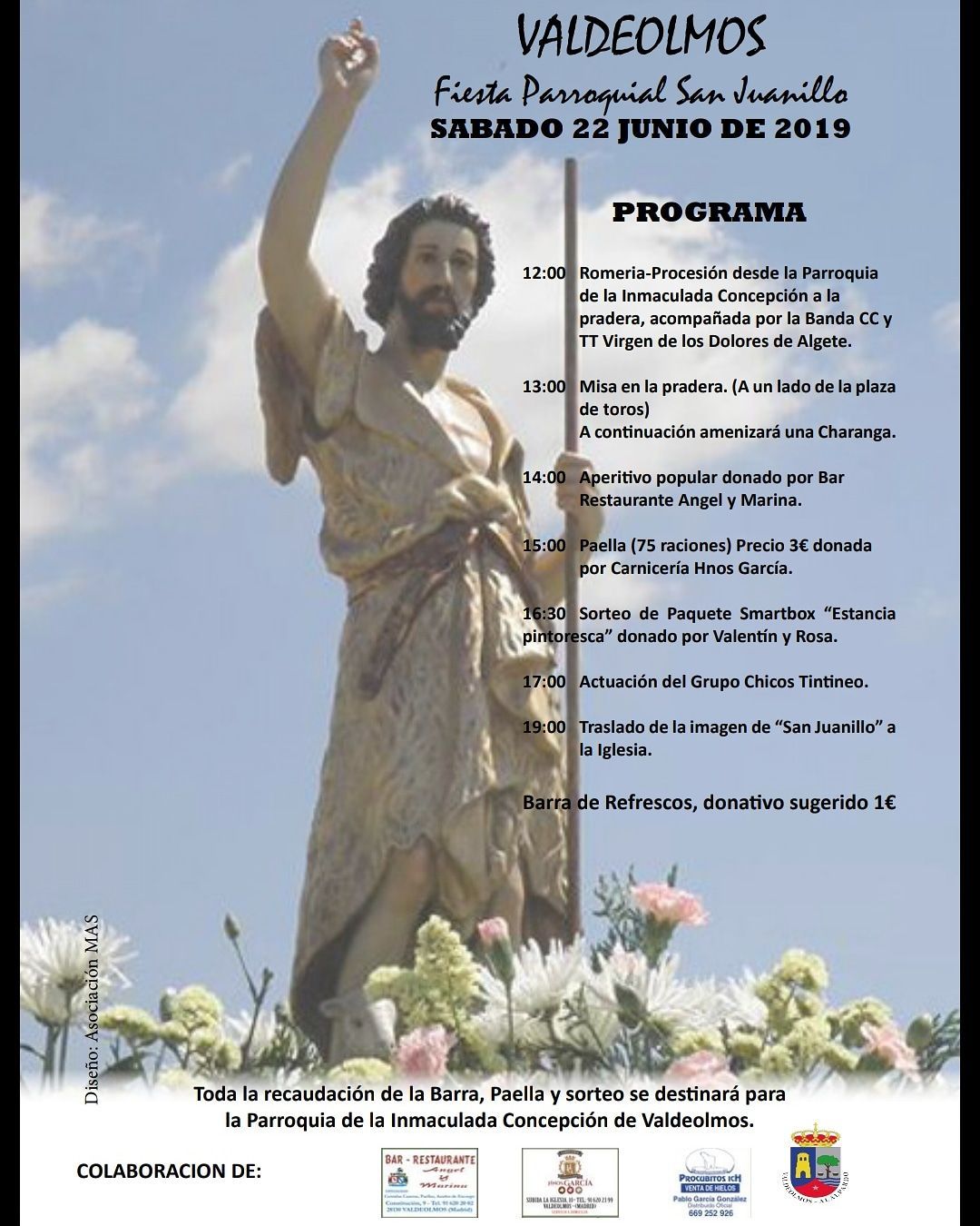 Seguro que no te pierde la Fiesta Parroquial San Juanillo. Además de la romería-procesión de la parroquia a la pradera, habrá aperitivo, paella, sorteo y una actuación musical.