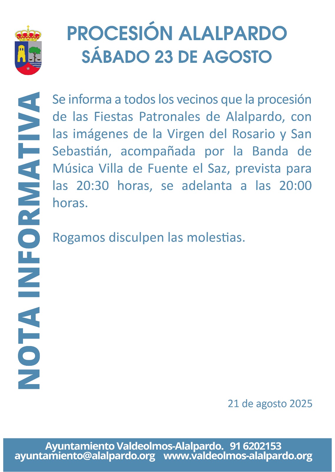 Se adelanta media hora la Procesión en las Fiestas de Alalpardo