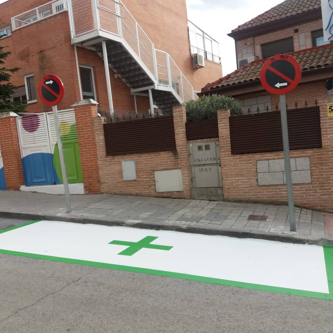 Se pide educación vial y concienciación ciudadana para este APARCAMIENTO HABILITADO A LAS PUERTAS DE LA FARMACIA situada en la Calle Alameda 2 en Alalpardo.