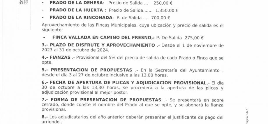 Subasta del aprovechamiento de pastos y fincas municipales 2023/2024