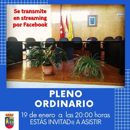 Pleno Ordinario el próximo 19 de enero a las 20:00 horas en el Salón de Plenos del Ayuntamiento