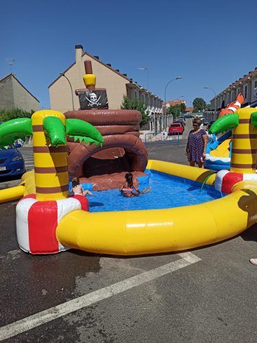 Diversión, saltos y toboganes con agua para los más pequeños en las Fiestas de Valdeolmos.