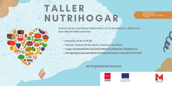 El interesante y gratuito Taller sobre nutrición tendrá lugar el jueves 28 de abril y el jueves 5 de mayo en la Casa de la Cultura de Alalpardo.