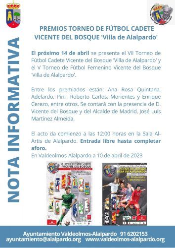 Tres jornadas de fútbol del bueno en el Campo Municipal de Alalpardo los días 16, 17 y 18 de mayo donde reinó la pelota con una gran dosis de compañerismo y deportividad. El consolidado Torneo de Fútbol Cadete Vicente del Bosque es la fiesta del fútbol y la convivencia.