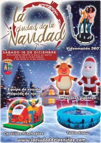 Mucho público en el interior y también en el exterior de la Sala del Arte con la Ciudad de la Navidad. Toro mecánico e hinchables para los niños y niñas que pasaron 4 horas de diversión, dos por la mañana y dos por la tarde.