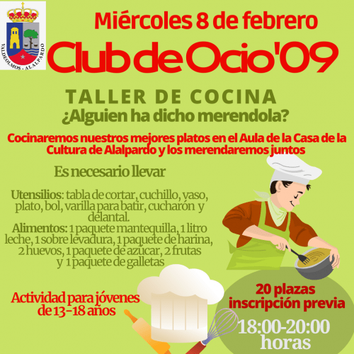 Miércoles 22 de marzo Taller de Cocina para niñ@s de entre 6 y 12 años