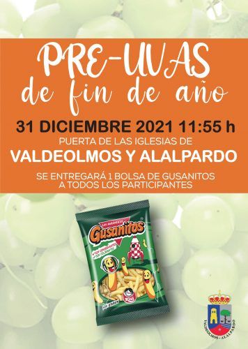 En lugar de uvas, lo celebramos con gusanitos en las puertas de las iglesias de Valdeolmos y Alalpardo el 31 de diciembre a las 11:55 horas.