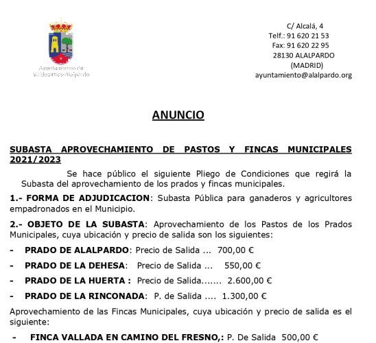 Subasta de aprovechamiento de pastos y fincas municipales 2025/2026