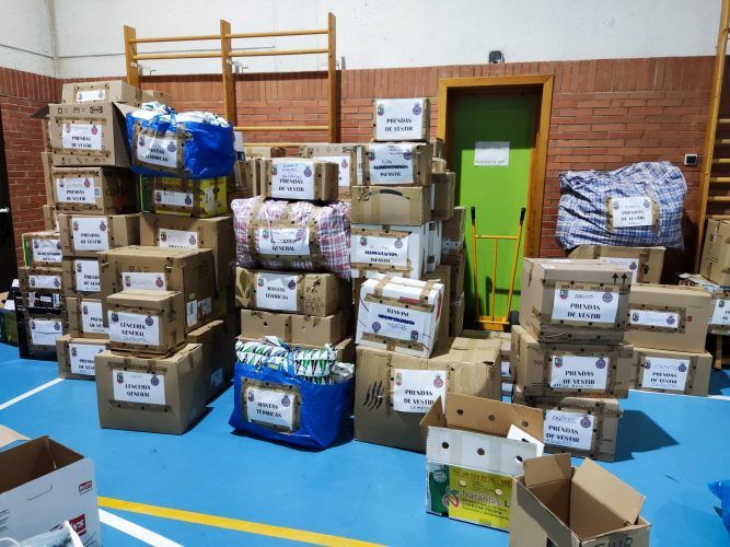 Desde el 10 marzo Protección Civil se encarga de la recogida de ayuda humanitaria para Ucrania en el pabellón cubierto de Alalpardo.