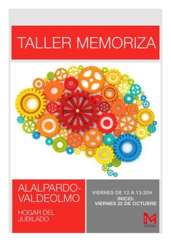 El viernes 22 de octubre de 12:00 a 13:30 horas tendrá lugar el Taller ‘MEMORIZA’ en el Hogar del Jubilado de Alalpardo.