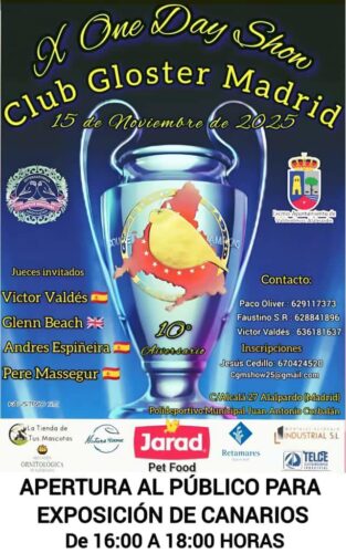 La Exhibición de Canarios Gloster es la X One Day Show, organizada por el Club Gloster Madrid