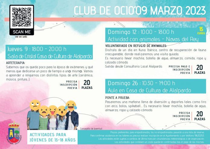 El Club de Ocio 09′ llevará a cabo tres actividades en marzo: 9, 12 y 26 de marzo