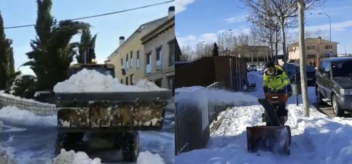 El sexto día tras la gran nevada dejada por Filomena llega al municipio maquinaria valiosa para unirse al operativo.