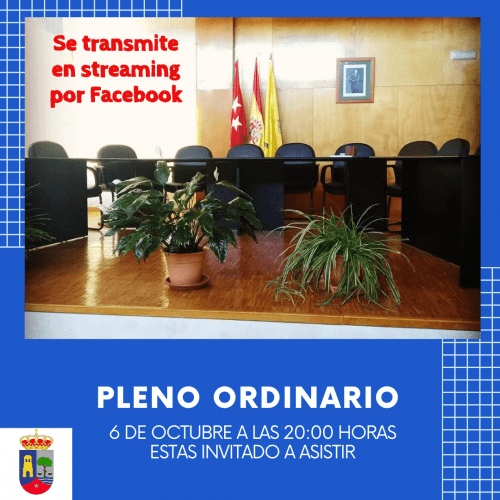 6 de octubre a las 20:00 horas se celebrará un Pleno Ordinario en el Ayuntamiento.