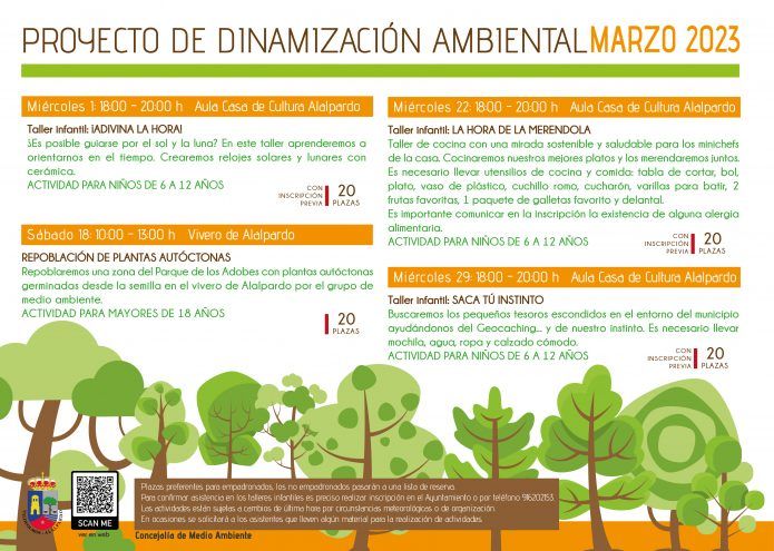 Miércoles 29 de marzo: Taller infantil ‘Saca tu instinto’. Buscaremos los pequeños tesoros escondidos en el entorno del municipio ayudándonos de Geocaching y de nuestro instinto. Actividad para niñ@s de 6 a 12 años. Inscripción previa. 20 plazas.