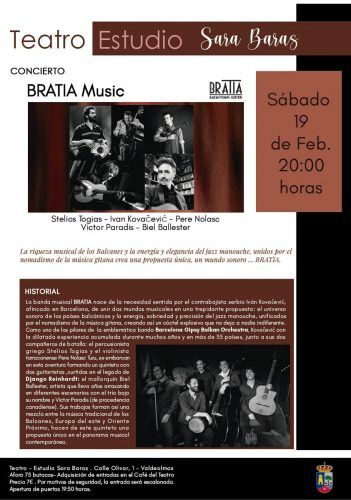 19 de febrero: Concierto de la banda musical ‘BRATIA’, un cóctel explosivo en el Teatro-Estudio Sara Baras