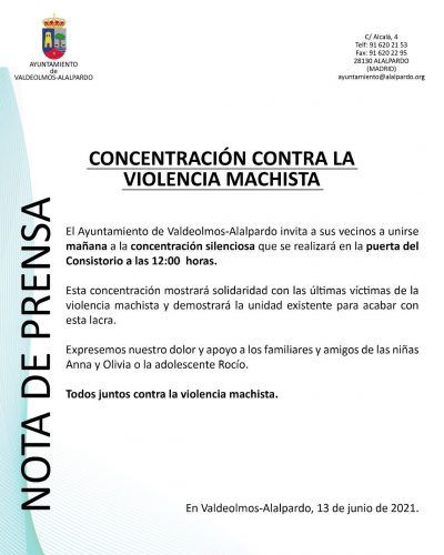 Juntos contra la violencia machista. 14 de junio: Concentración silenciosa en la puerta del Consistorio.
