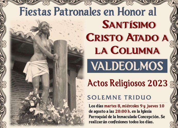 Programa de Actos Religiosos durante las Fiestas Patronales de Valdeolmos en honor al Santísimo Cristo atado a la Columna