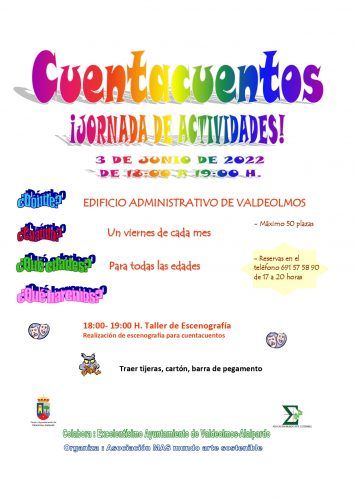Cuentacuentos y otras actividades en el Edificio Administrativo de Valdeolmos el 3 de junio a las 6 de la tarde.