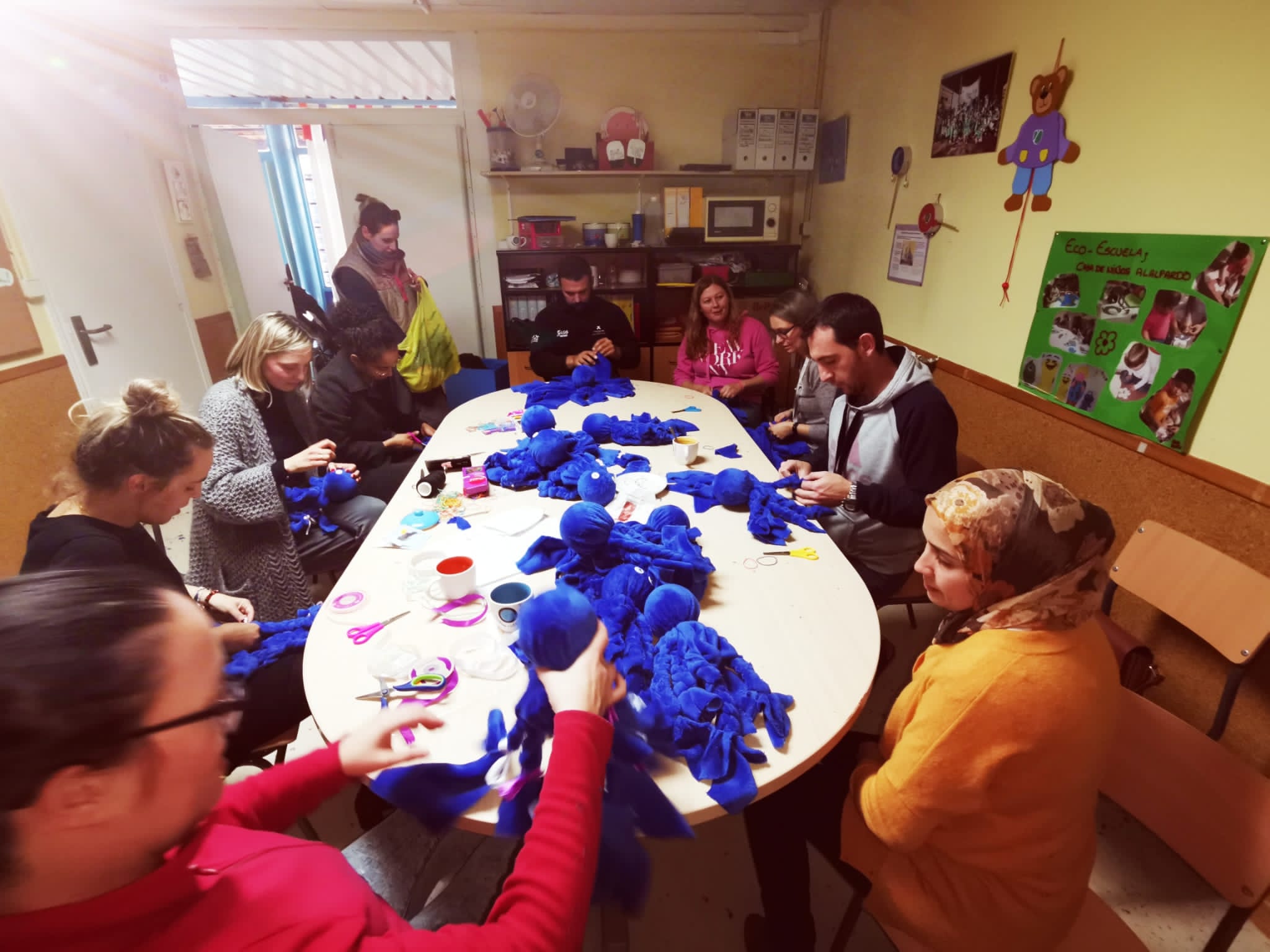 En la Casa de Niños de Alalpardo han retomado los Talleres de Familia. Los duendes de la Navidad trabajan sin parar para tener los regalitos de los peques a tiempo. Inestimable ayuda de las familias