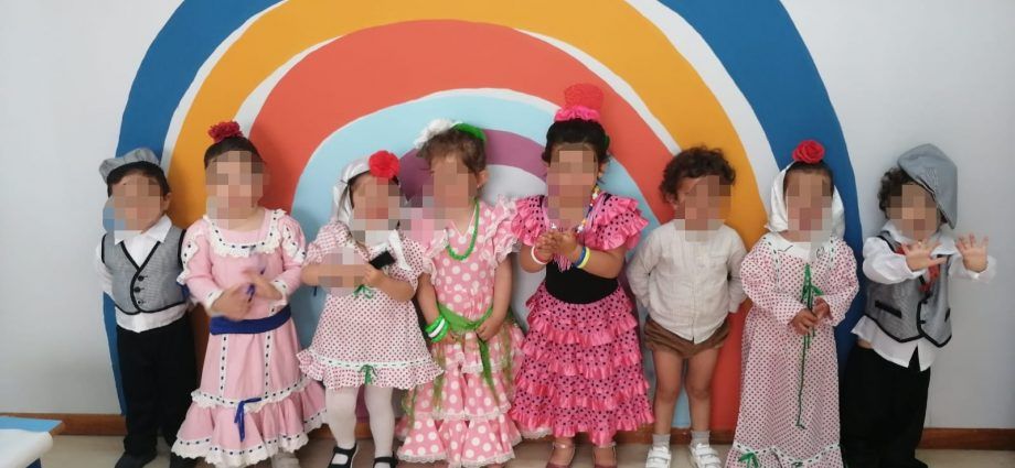 Las maestras decoraron con los peques los mantoncillos para adornar la caseta simulando la verbena. Además se aprovechó la fiesta para una actividad de psicomotricidad fina: exprimir naranjas para tomar su propia naranjada.